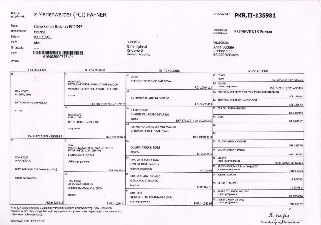 Od 2019 roku z oddaniem prowadzimy hodowlę Cane Corso Italiano zarejestrowaną w Związku Kynologicznym w Polsce (FCI). Psy były obecne w naszym życiu od zawsze – dziś tą pasją dzielimy się nie tylko między sobą, ale także z naszym synkiem. Jesteśmy absolwentami zootechniki Uniwersytetu Przyrodniczego w Poznaniu, a oprócz hodowli psów prowadzimy również gospodarstwo rolne.